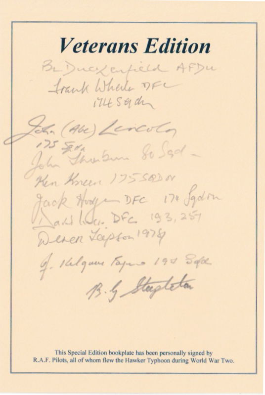 Mounted Bookplate signed by 10 veteran RAF Typhoon pilots