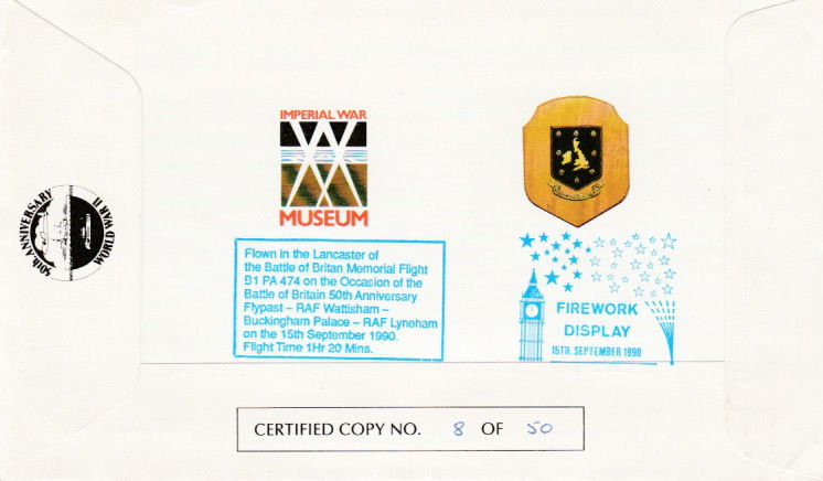 Special limited edition cover produced to commemorate the 50th Anniversary of The Battle of Britain. A rare "Buckingham Palace" date stamp 15th September 1990. The cover has been signed by legendary RAF Battle of Britain fighter pilot and the Allies top scoring wartime Ace: Air Vice Marshall J.E. "Johnnie" Johnson CB, CBE, DSO & 2 Bars, DFC & Bar, DL